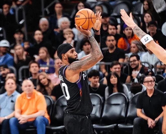 太阳队这边,布克出战13分钟,投篮7中4得到10分2助攻1抢断。